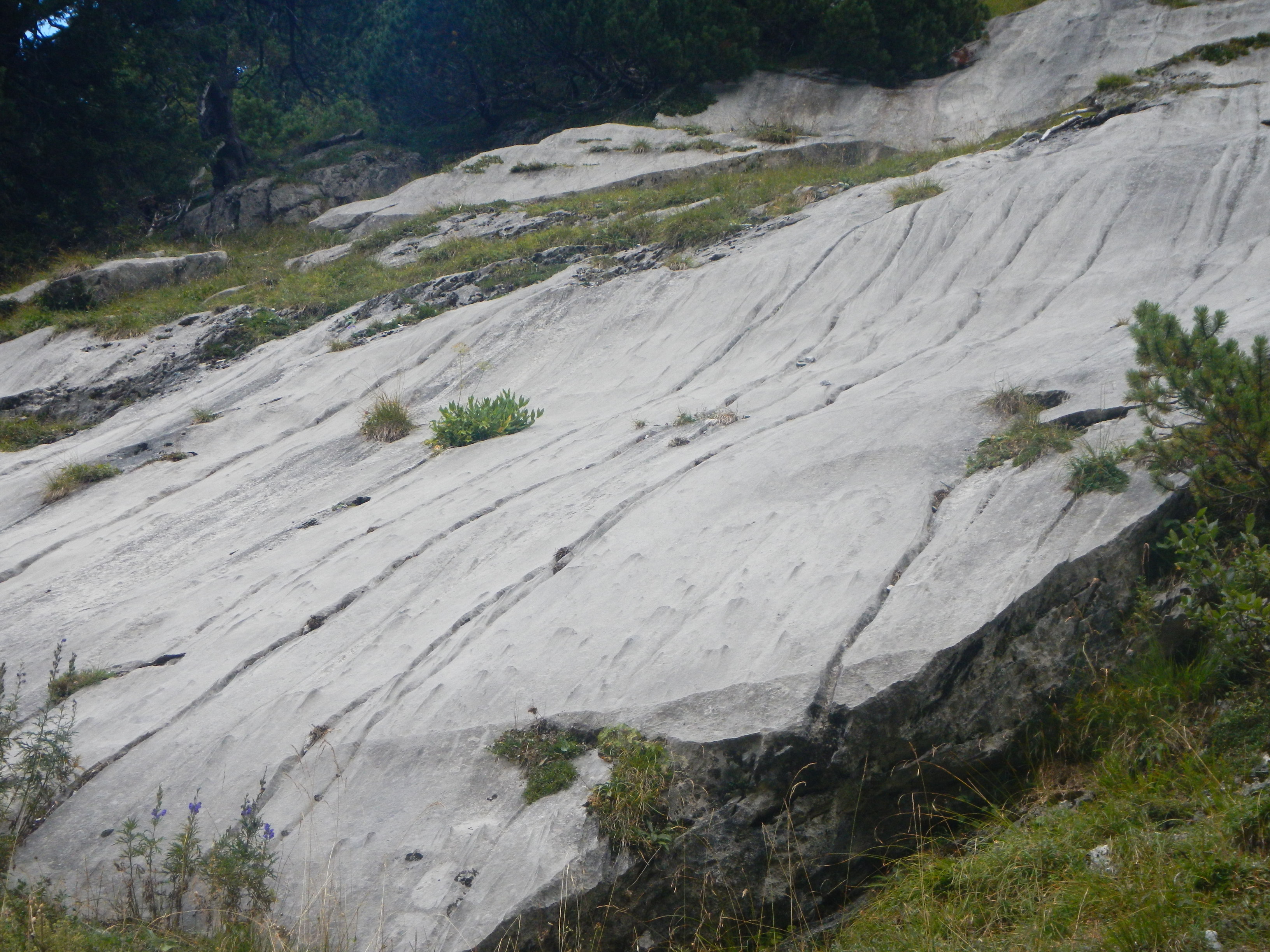 Das sind meist Gletscherschliffplatten mit Wasserrillen.