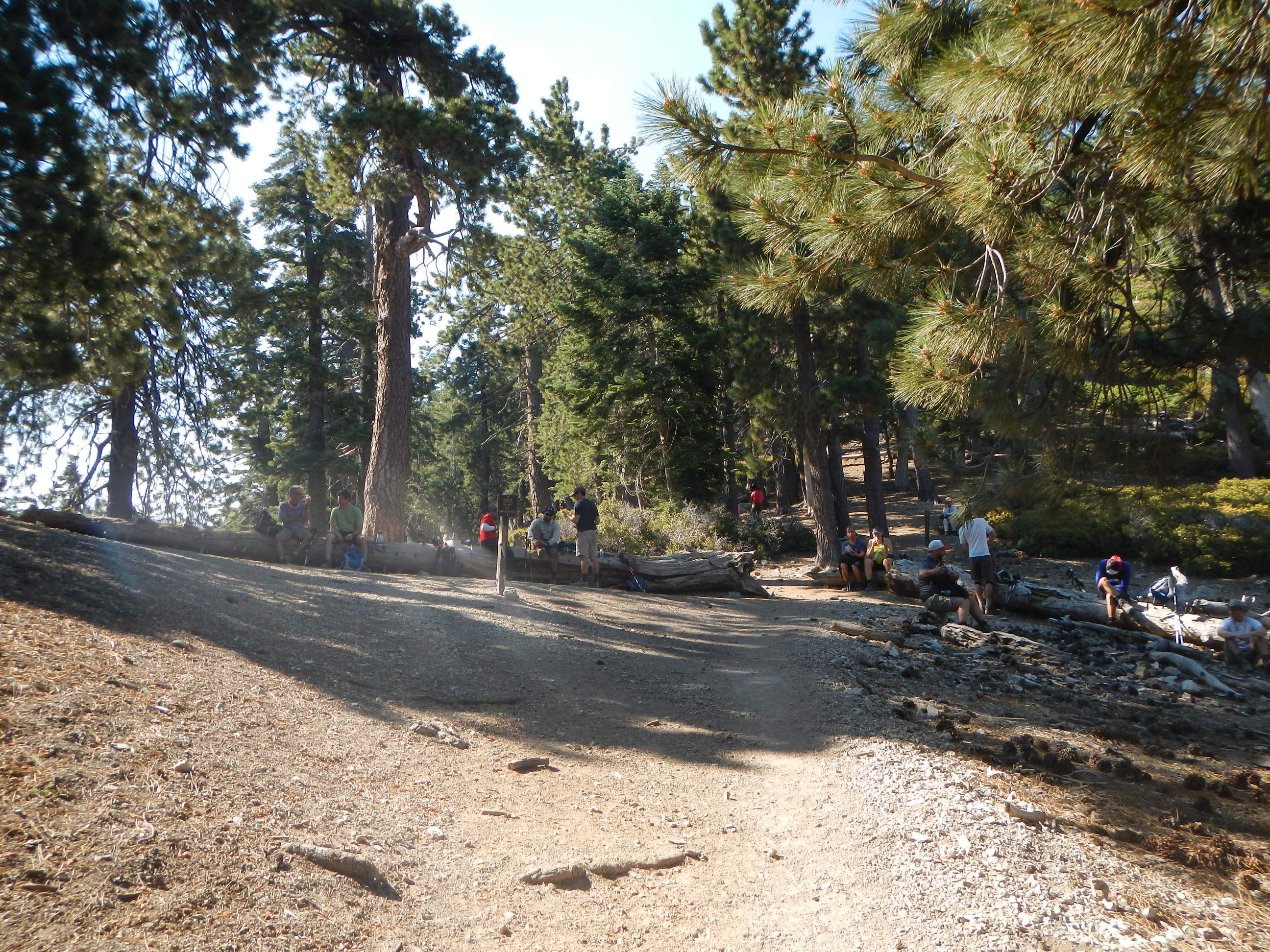 Ankunf am Ice House Saddle. Hier liegen viele bequeme Stämme. Ich geh weiter Richtung Ontario Peak.