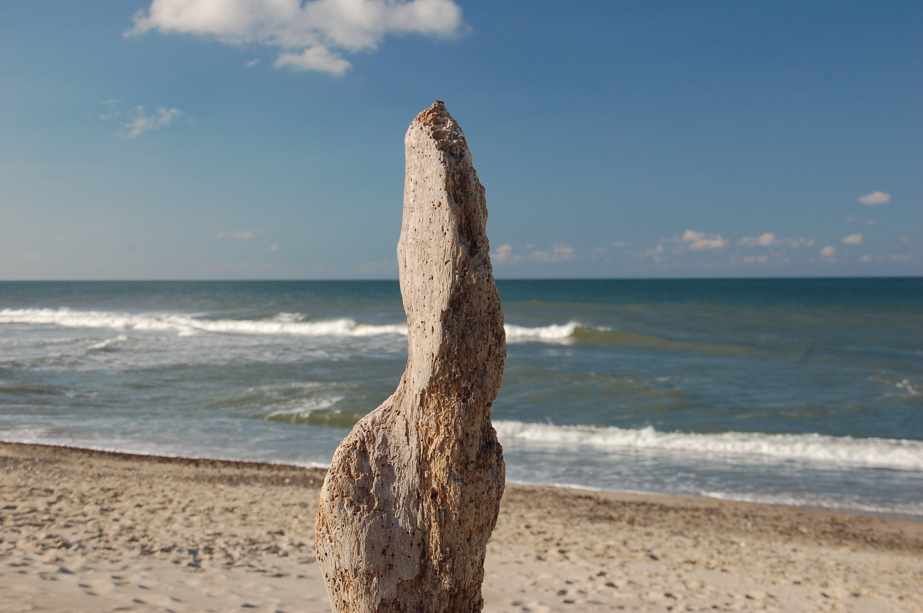 Da hat jemand ein Stück altes Schiff in den Sand gesteckt.