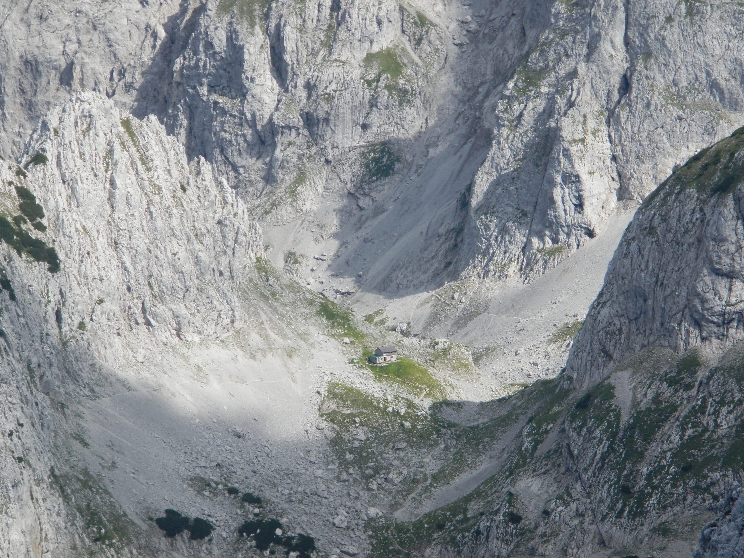 Da unten liegt idyllisch die Fritz-Pflaum-Hütte.
