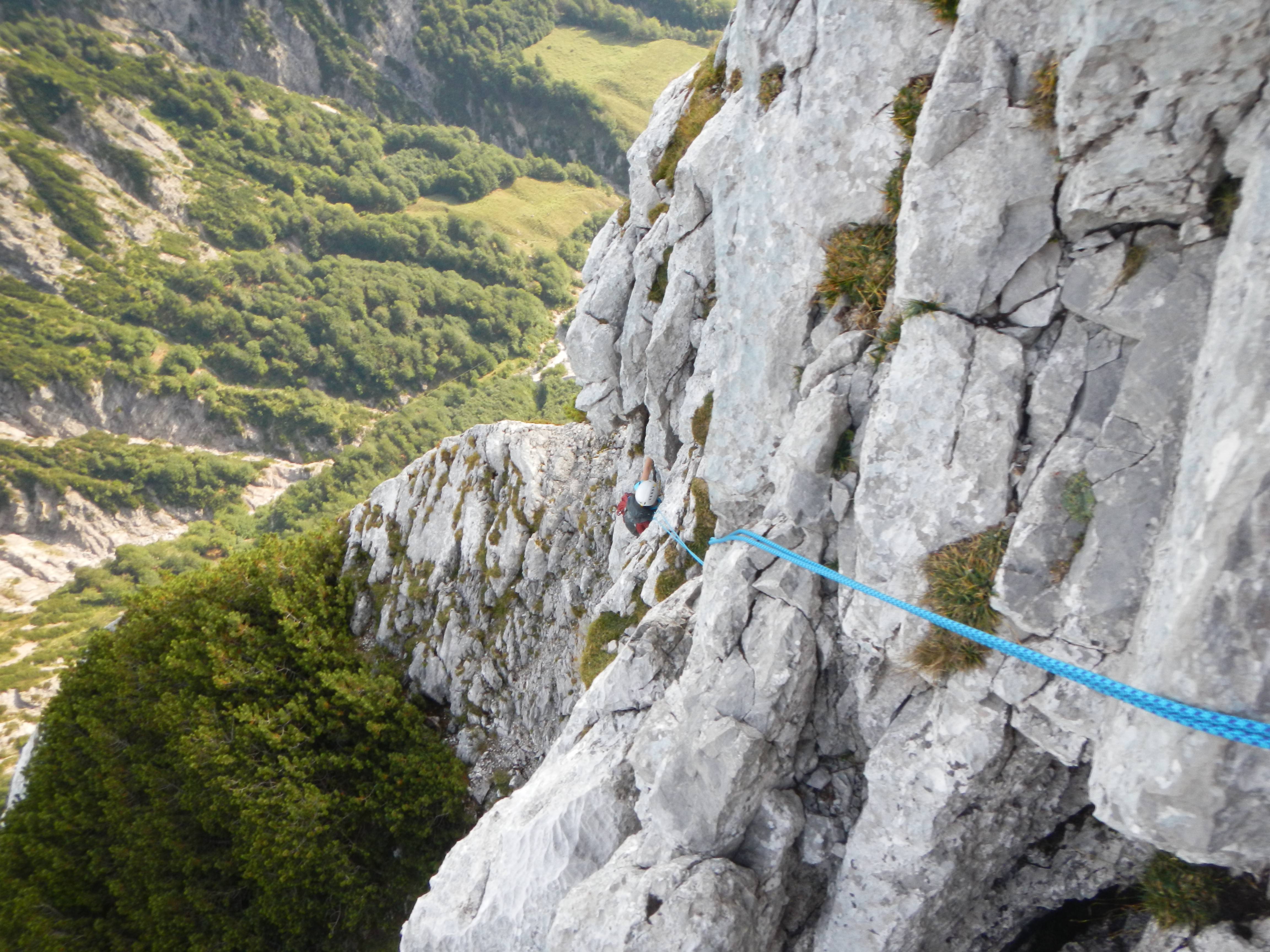 Hier beginnt sehr leichte Kletterei. Das Seil hätten wir nur für die ersten vier Meter gebraucht.