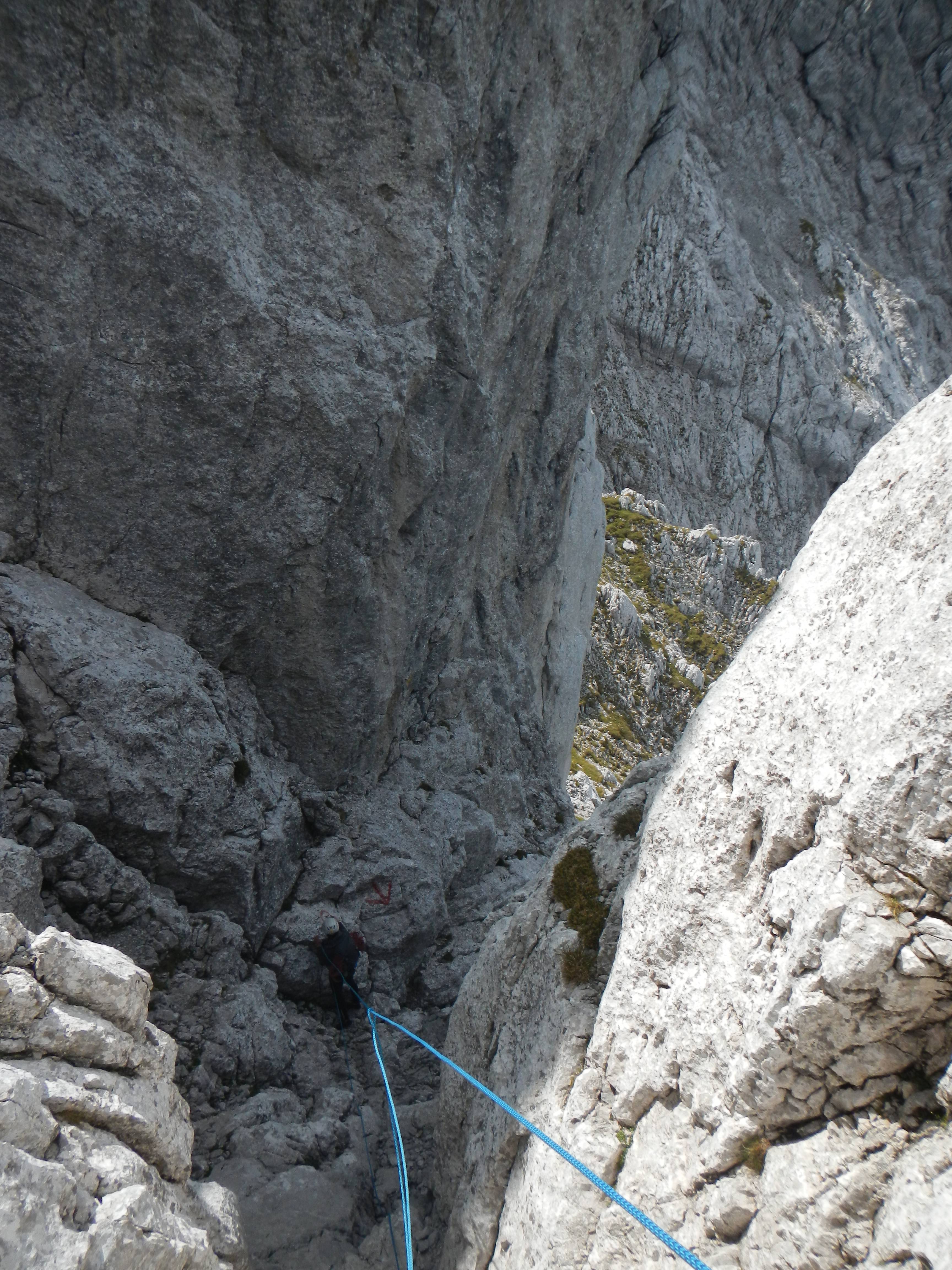 Der Abstieg erfolgt durch die Schöllhornrinne.