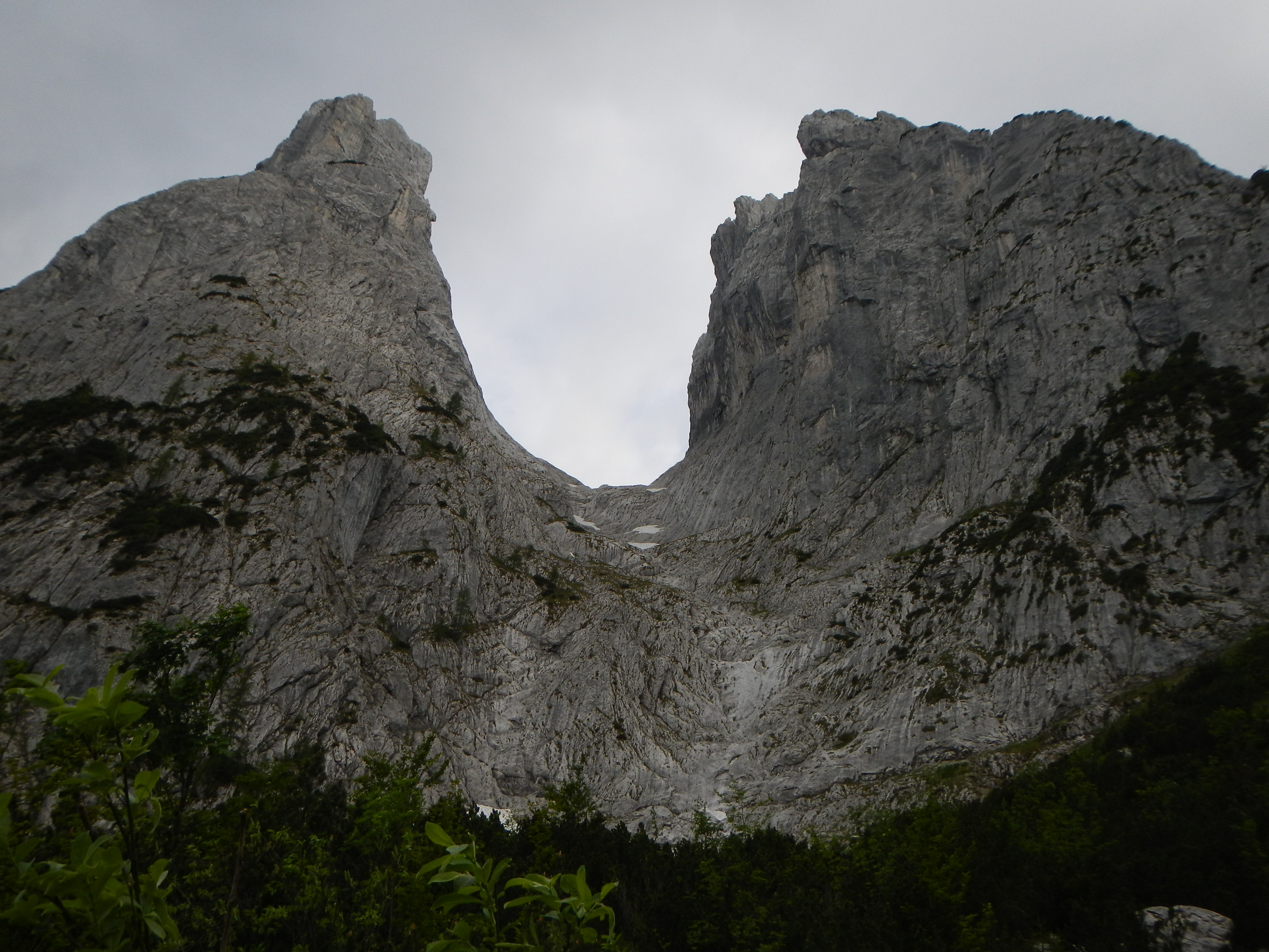 Die Steinerne Rinne mit links Predigtstuhl und rechts Fleischbank. Unsere Ziele.