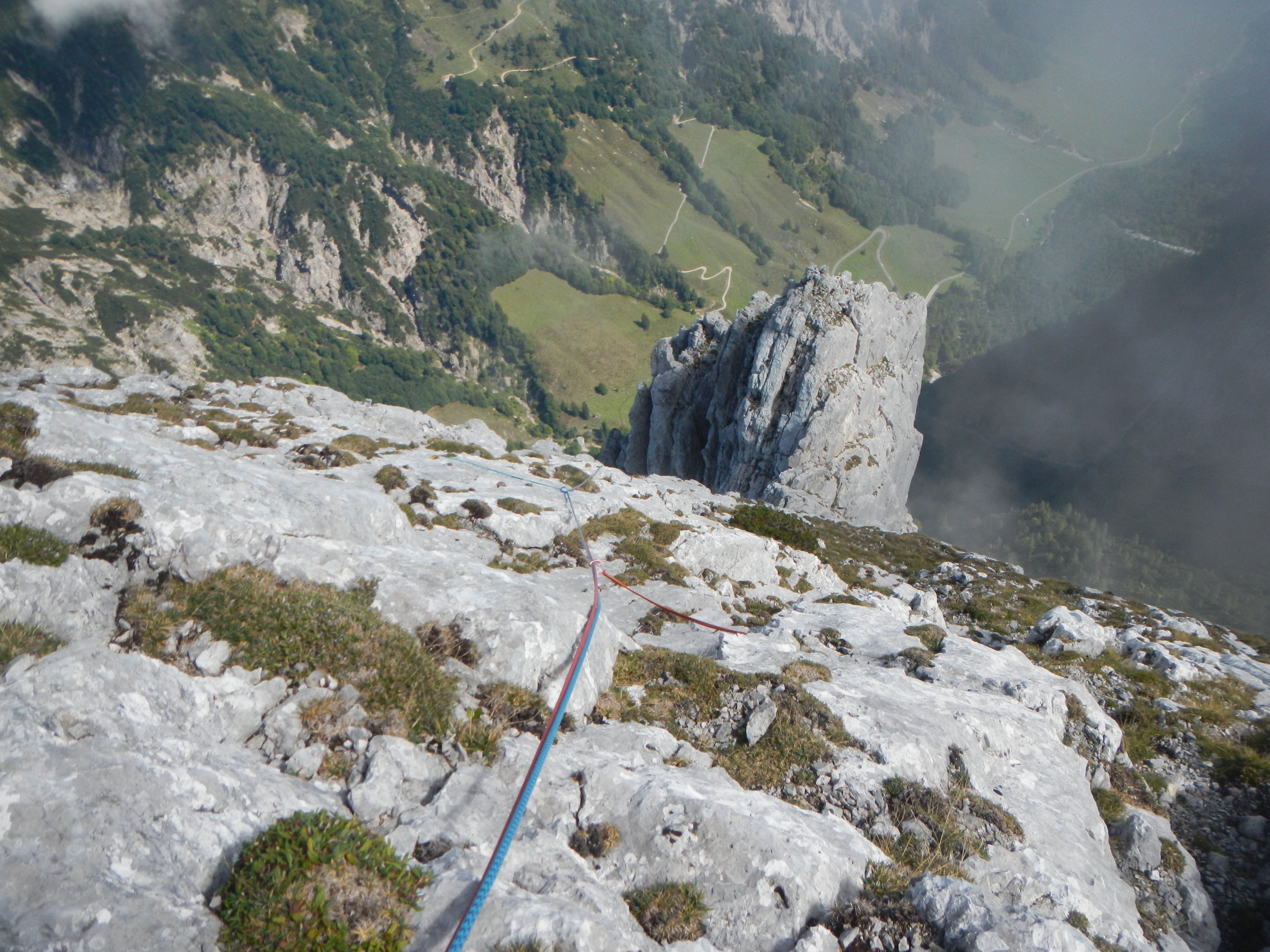 Bei der 14. Seillänge geht es in die Sonne. Die Morgennebel haben sich verabschiedet.